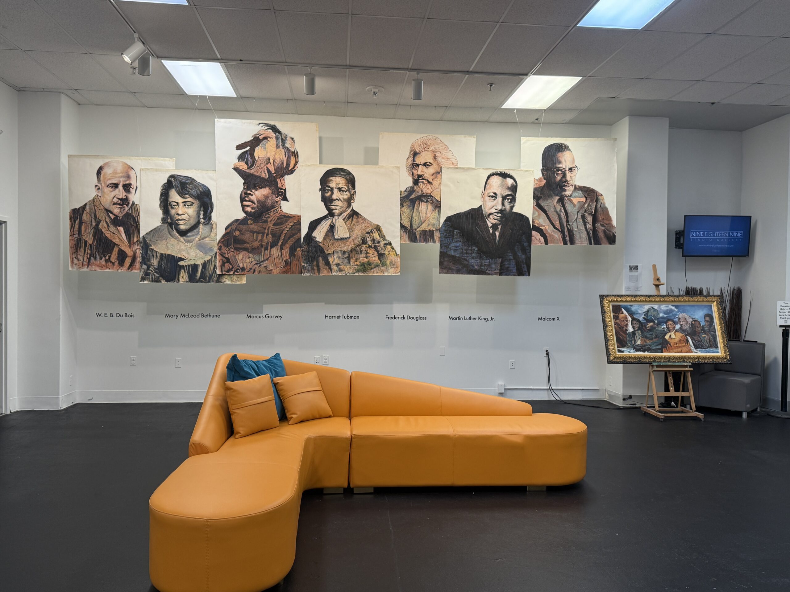 Radiating explosive color, symbolism, and cultural memory, HANDS MAKING LIGHT showcases Edmunds’ powerful storytelling through clothworks that illuminate history, resilience, and ancestral knowledge passed down through generations. Central to the exhibition is Edmunds’ iconic Underground Railroad wall hanging, featured on the cover of her award winning, bestseller Secret Stitches: An Underground Railroad Activity Book for Children and Adults. The piece highlights ten primary quilt codes believed by some scholars to have communicated warnings, directions, and messages of hope to enslaved people seeking freedom prior to Emancipation.